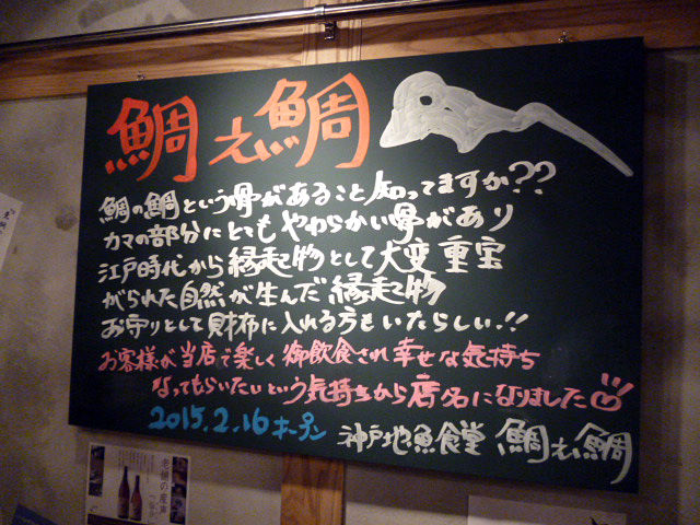 「鯛之鯛」店名の由来は…?店内黒板をご覧あれ!w