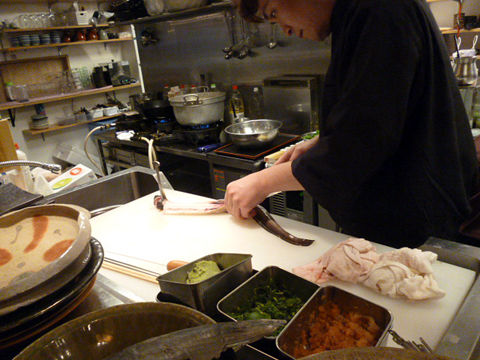 早々にまったりしちゃってると、お兄さんが水槽から穴子を捕獲!