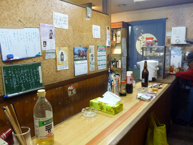 立ったカウンター内側が簡易の調理場になっていて、おでんがあったり軽く焼物がされたりします。