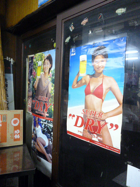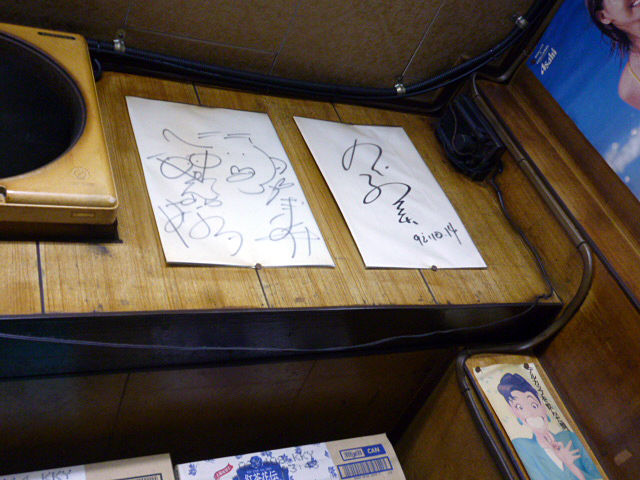 「これいつのん?誰?」なビールのポスターが貼ってある中、2枚の色紙。