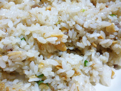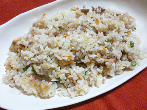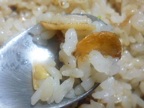 ガーリックオイルやら調味料やらが米粒一粒ひとつぶにまわり、どこを食べても味のムラがないのもよろしくって。