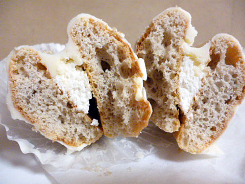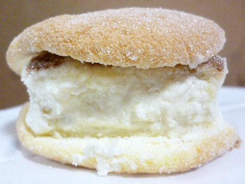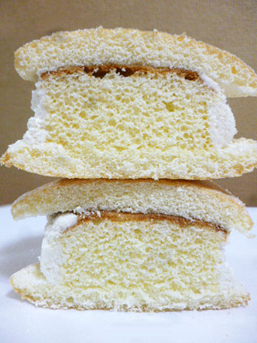 ふわっふわ砂糖がジャリリのブッセ生地にカステラとクリームがサンド。