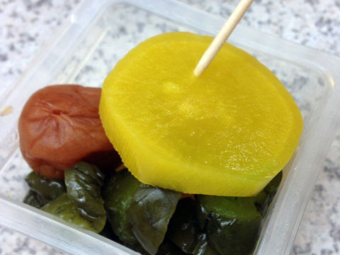 胡瓜漬け、梅干し、大きめ厚切りのたくあんが入って¥100はエライ!