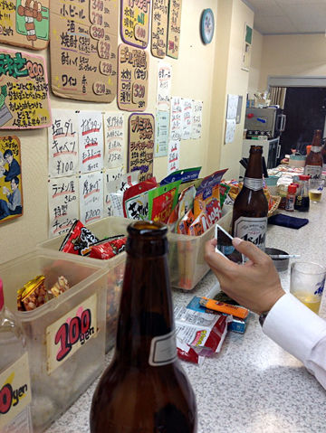 店内は右手に缶Bやら缶チューが入った冷蔵庫。もちろん購入していくことも可能。奥ではタバコ販売もしてます。
