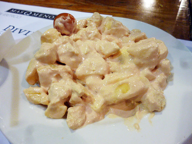 鶏肉とパイナップルがマヨネーズソース的なもので和えられたの。