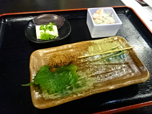 それぞれ別皿盛りをお盆に乗せるという立派なサーブながら、個々があまりに少量ミニサイズ過ぎて逆に悲しい気がしなくもなく…w