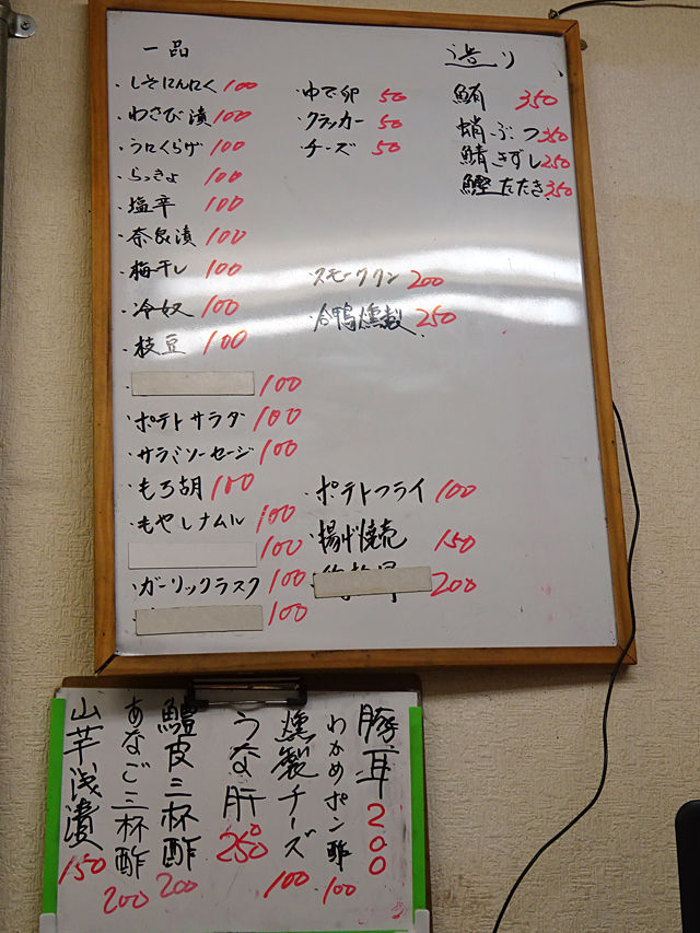 そして超安い!ゆで卵、チーズなどの¥50から、一品は簡単なものながらアテには十分な¥100ものがたくさんあるよ!