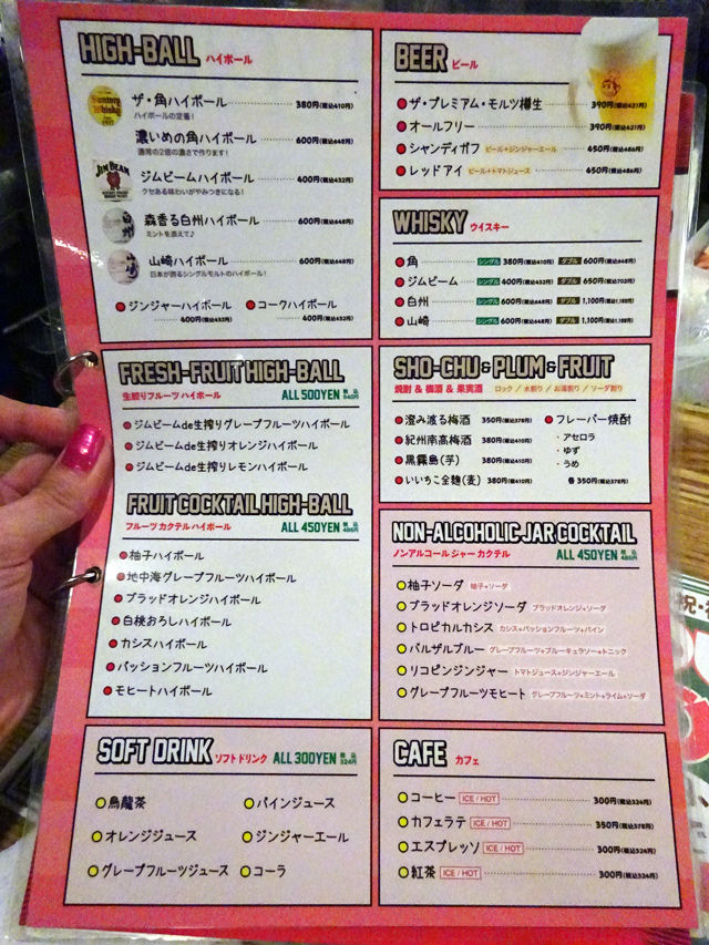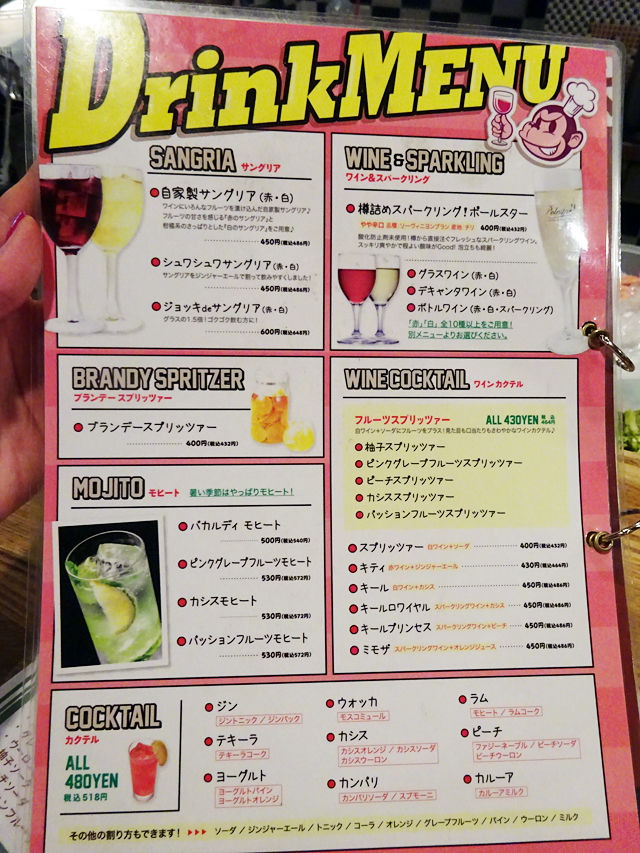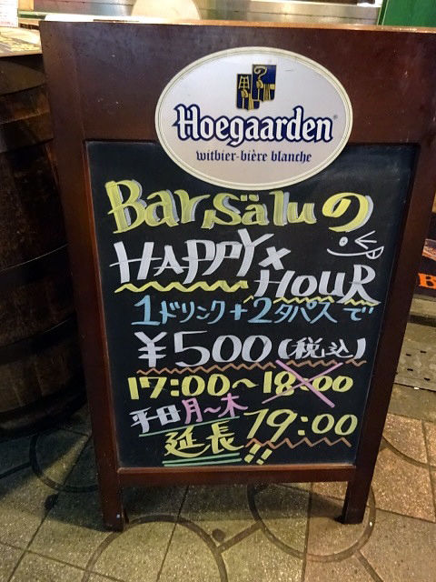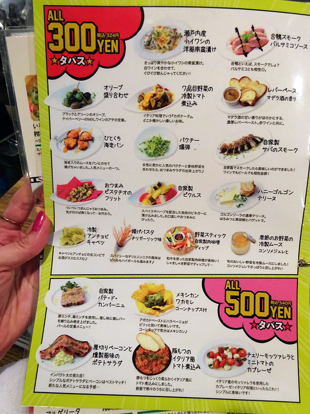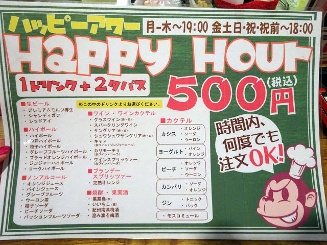 1ドリンク+2タパス=¥500(税込)