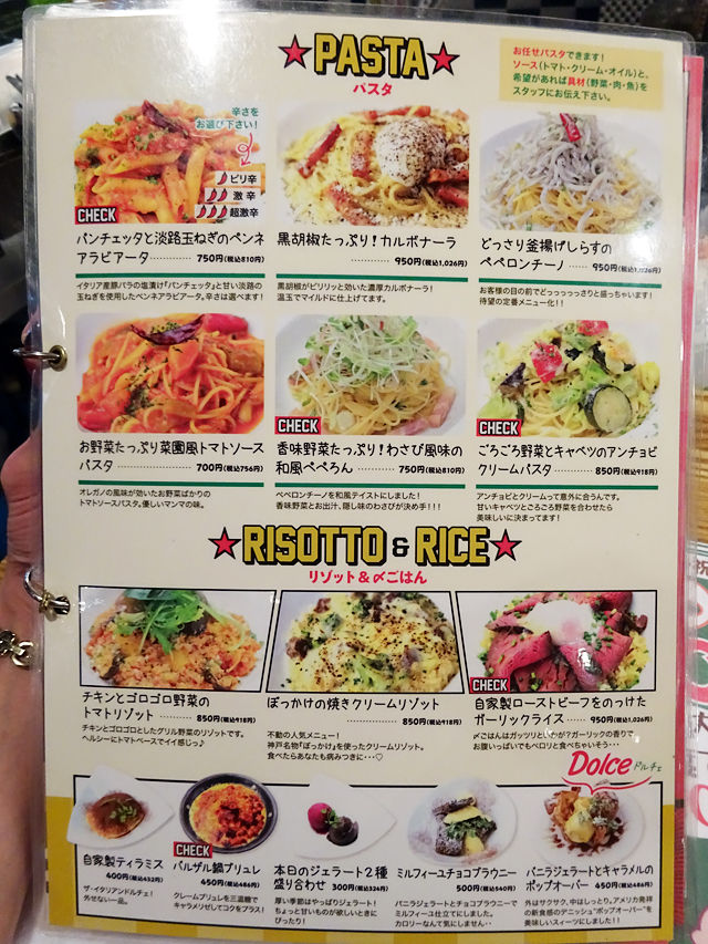 メニューは手元にパウチのブック状で。写真入り賑やか楽しく。