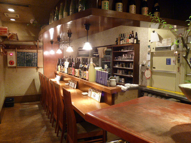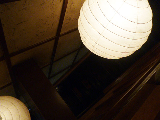 店内は1階がカウンター、頭上に大きな提灯が下がる階段をのぼった2階はカウンターとテーブル席。さらに3階もあるそうで、ビル丸ごと!広々!