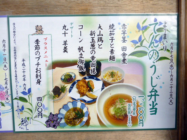 人気のてんのうじ弁当や月替わりのお弁当は季節ごと、毎月内容が変わるそうで、一年通ったら12種類も楽しめるんだ!すごーい!