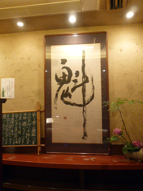 2階奥の席にオジャマしまして。目の前にも額入り「魁」!