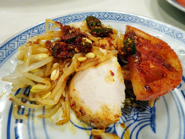 辛さはそこそこに、自家製のコク深い醤油ソースと豚の甘みがマッチ。