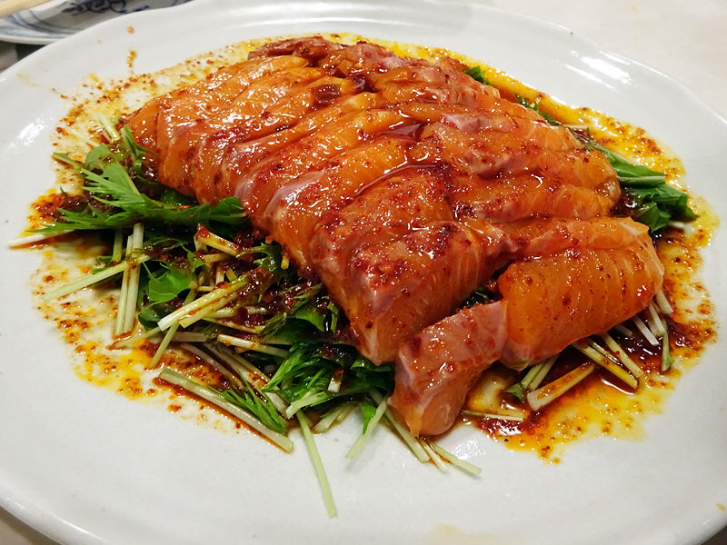 ビジュアルの通り、ひと口目から辛いよーっ!しっとりジューシィに仕上がった鶏に、赤唐辛子粉の刺激的な辛さ、青唐辛子の爽やか且つ突き抜けるような辛さがぐんぐん広がりますっΣ(O_O)麻より辣がきいた一品です。