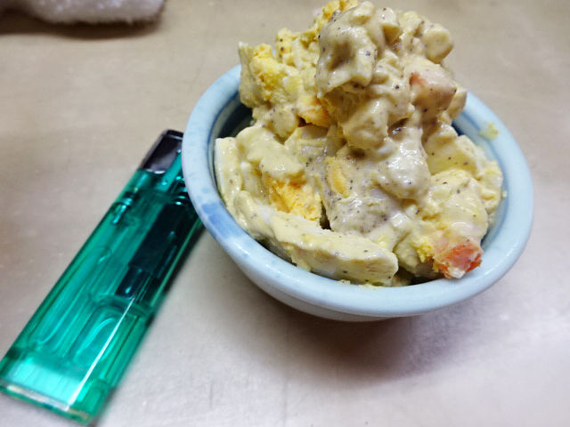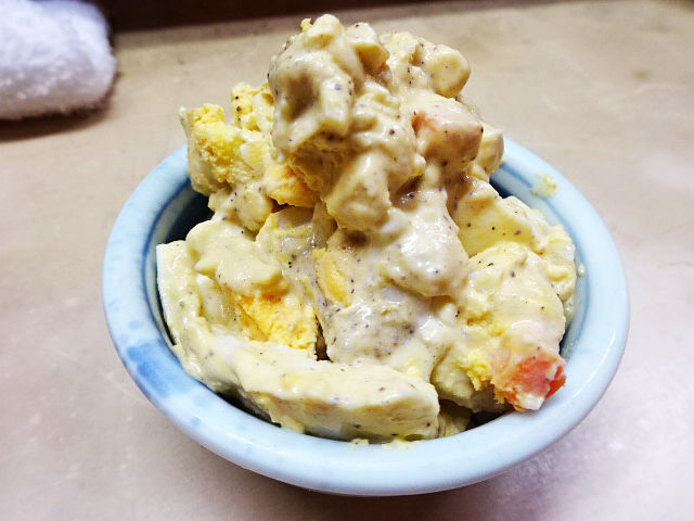 粗め潰したゆで卵に、人参とじゃがいもも入ってます。