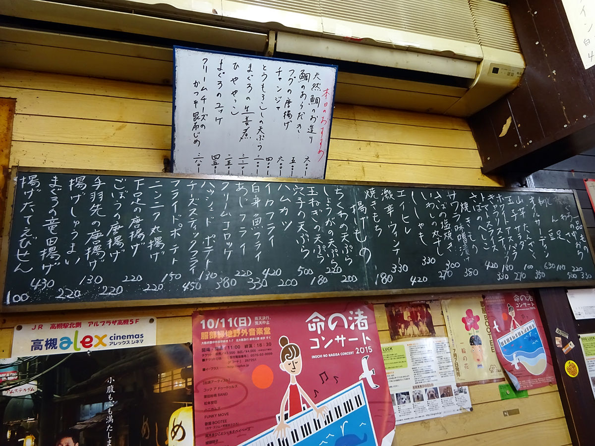 メニューは店内壁あちこちに貼られ、どこからでも見やすく。