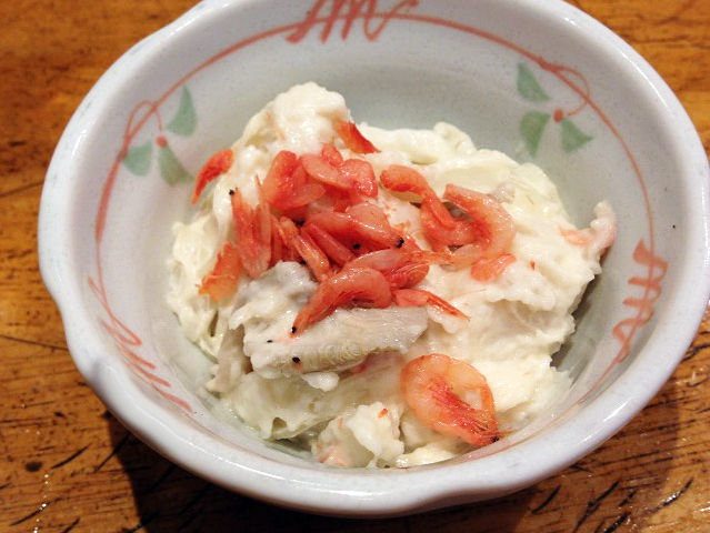 粗つぶしの里芋に、たまねぎ、しめじ入り、桜海老トッピング。