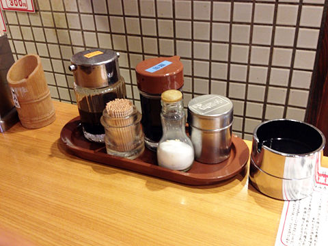 各自の前には調味料類、灰皿、お箸などがスタンバイしとります。
