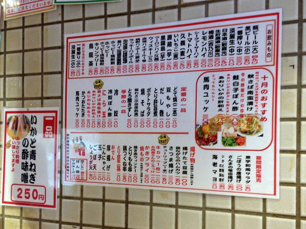 立った目の前には品書きがズラリ。見やすくていいねぇ。