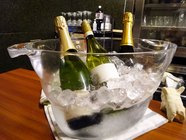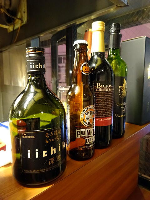生ビール¥380、ハイボール¥300、焼酎¥350、ソフトドリンク各¥250などの定番に加え、ワインがウリね。スパークリング¥400〜、赤白各¥350〜。