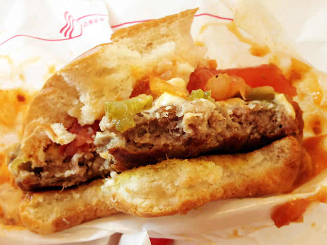 肉の旨味が感じられるパティに、酸味の効いたミートソース。