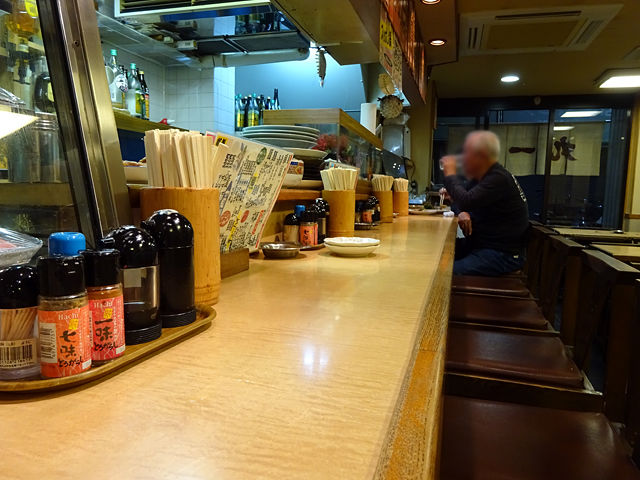 店内は右手が奥にズーンと伸びるカウンター、左手にテーブル席。