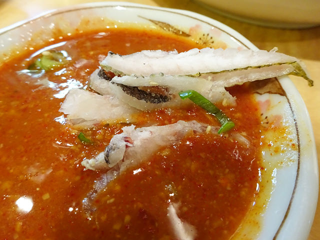 淡白な味わいゆえ、コチュジャン風のタレでいただきますよ。