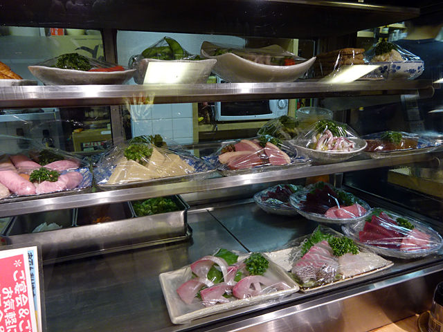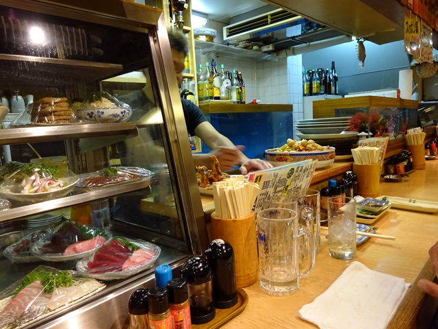 座った目の前ショーケースにはお造りやらアテやらがしっかり揃います。