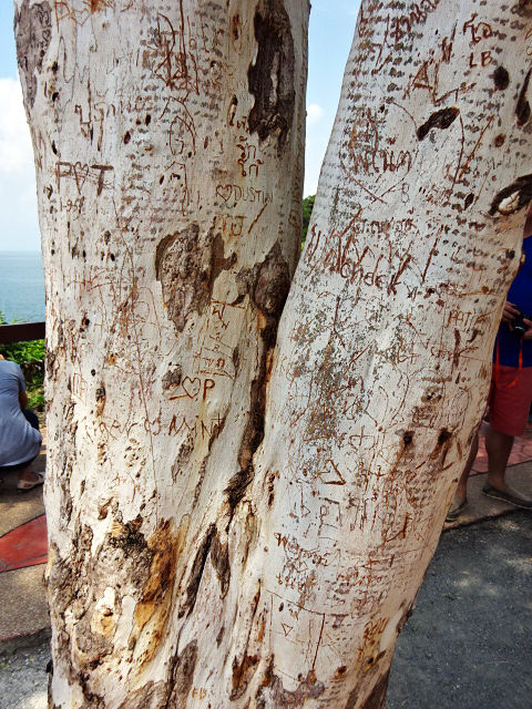そこにはたくさんの施錠があったり、木には名前が掘られています。