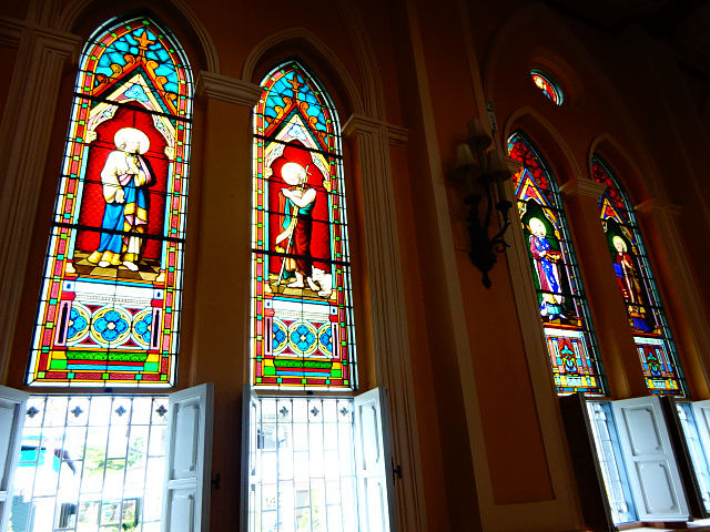 内部は、聖者の写真や、カラフルなステンドグラスで美しく飾られています。