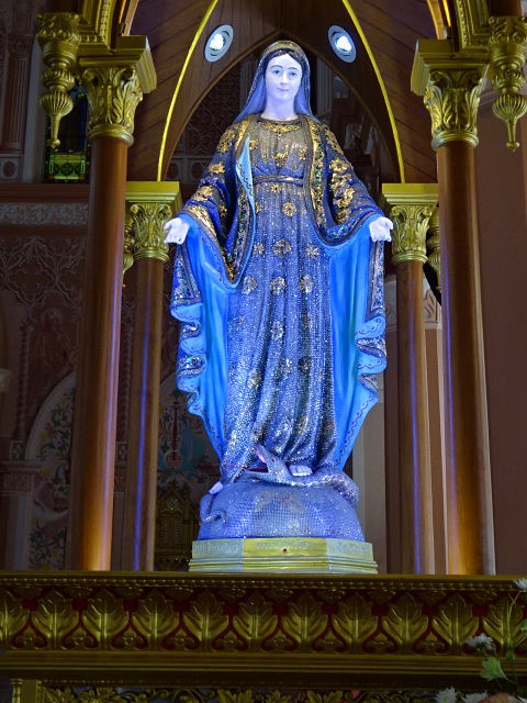 The Virgin Mary Statue, which is the symbol of this cathedral, mostly covered in gold, gemstones and enamel.