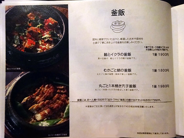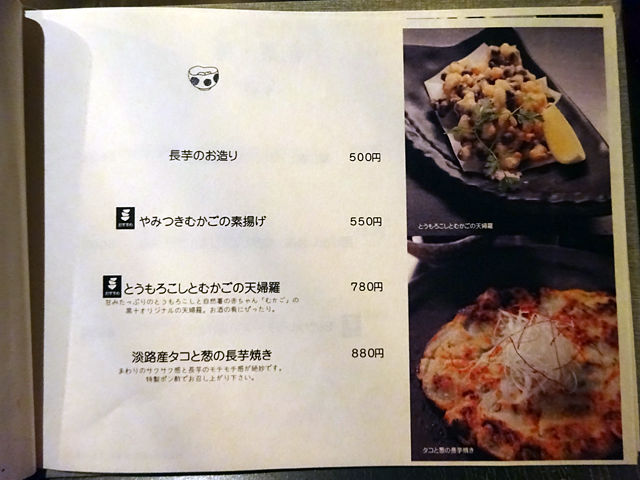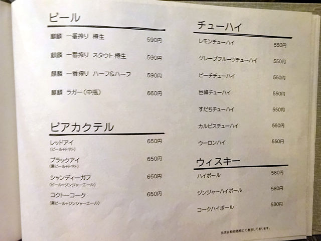(夜のメニューとドリンクメニューの一部)