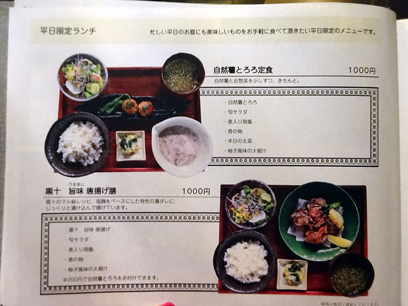 平日限定ランチ¥1000が2種に、平日休日注文可能な¥1380、¥1650、¥20003種の、全5種が揃います。