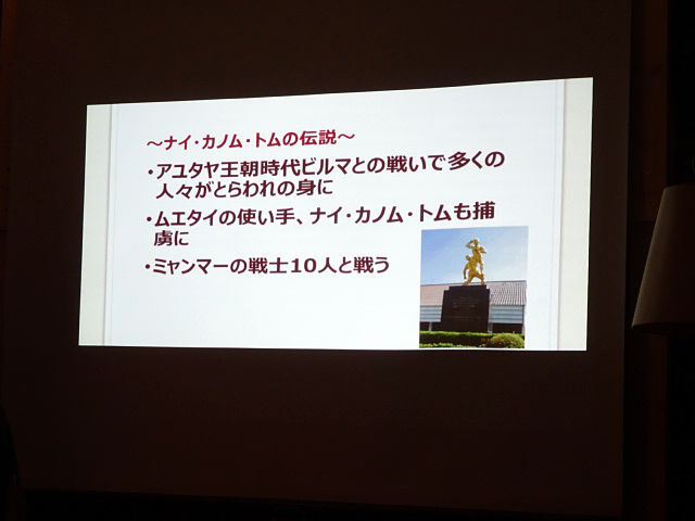 彼はビルマ軍との戦いで囚人となるも、ビルマ王の前でビルマ人選手を打ち負かし、自由の身になってシャム(現タイ)へ帰還します。200数十年前の1774年3月17日のことでした。この戦いで使われた技こそがムエタイの起源だとされ、毎年3月17日は「ムエタイの日」なんですって!(笑)