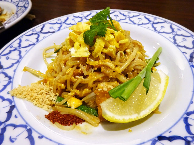 太めの麺はもっちり歯ごたえあり、卵やナンプラー、タマリンドの果汁、唐辛子などの味付けがしっかり絡んでます。かなり濃厚ーっ