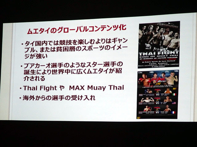 その名の通りタイの国技。格闘技の一種で、タイが発祥の地。