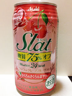 Slat<さくら&さくらんぼサワー> アサヒビール 2016年02月08日 1缶(350ml、24kcal/100ml)¥108 もうすぐ桜の季節!?ああ、時が経つのって何て早いんだろう…wってことで、久々Slatのさくら&さくらんぼ。 うんうん。さくらんぼだ。(桜は?w)可愛らしいさくらんぼが目に浮かびます〜すっきりした甘みでさっぱり。 桜が咲き始めた早めのお花見のお供にいい感じです〜 ☆アサヒビールHP あなたの1Clickがプァワーの源です♪ ☆昼酒・一人酒の酒場での人間観察をイラストで綴ったブログ 「関西女の酒場放浪記(仮)」こちらもヨロシク! ★★★15/12/17更新★★★ 「★飲んだんアルコール・ドリンク」カテゴリの最新記事 「├缶チューハイ・カクテル・ビール」カテゴリの最新記事 タグ :#缶チューハイ#サワー#低カロリー#さくら#さくらんぼ < 前の記事次の記事 > コメント コメントフォーム 名前 コメント 記事の評価 リセット リセット 顔 星 情報を記憶 コメントを投稿する トラックバック