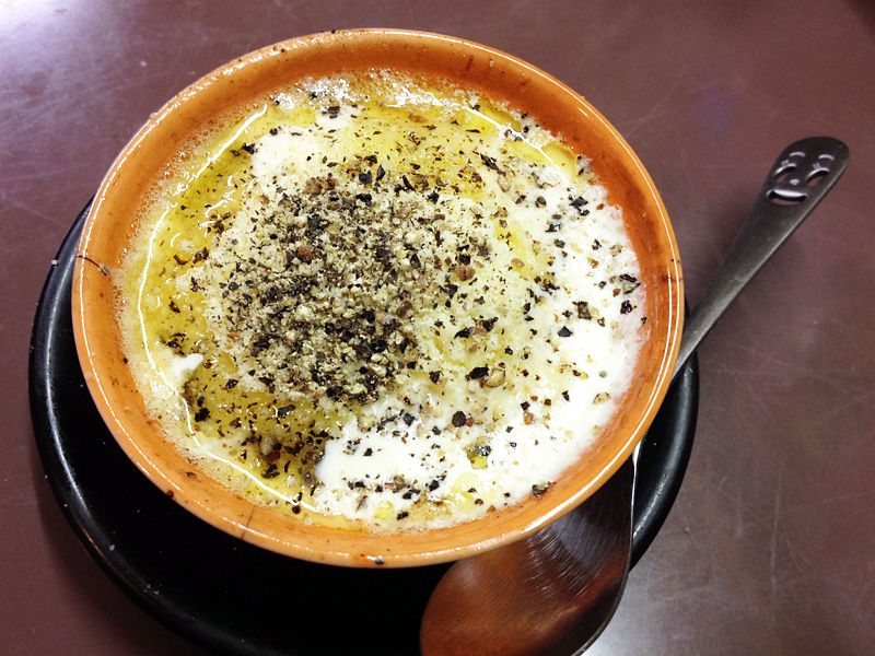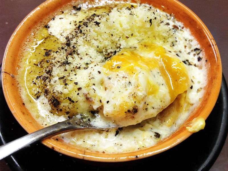 生卵を割り入れ、たっっっぷりチーズをかけオーブンへ。仕上げにこれまたたっっぷりのブラックペッパーをかけて。可愛らしいスプーンで混ぜていただきくと、これもまさに、カルボナーラなのだ!美味し過ぎ!