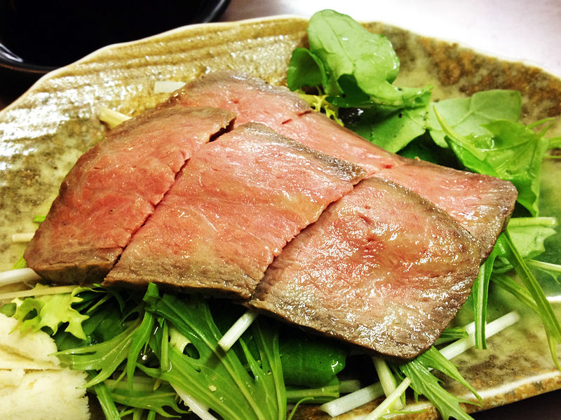 この美しい肉色!適度に歯ごたえがありつつやわらかで繊細な舌触りに、赤身の旨味が溢れ出します!香り高いホースラディッシュをたっぷり乗せて。