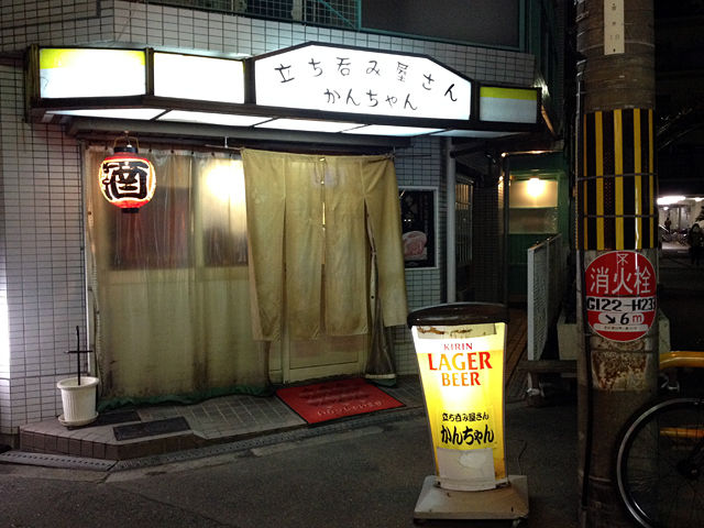 暗がりに煌煌と光る看板、小さな赤提灯、だらりと下がる布暖簾。
