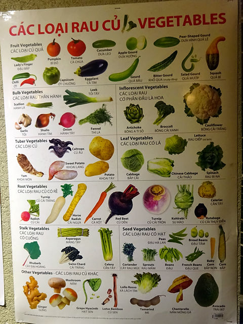 ちょっと細い階段を上ると、木の扉が。入り口付近には色々飾られ、目に留まったのがベトナムの野菜たちが紹介されるポスター。いいな、欲しいな!w