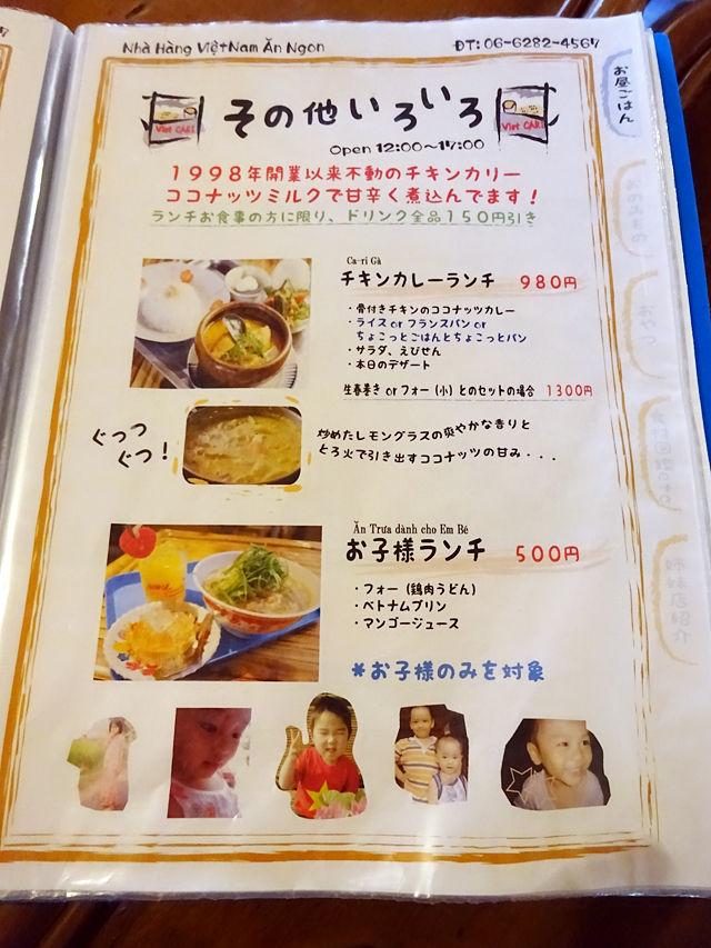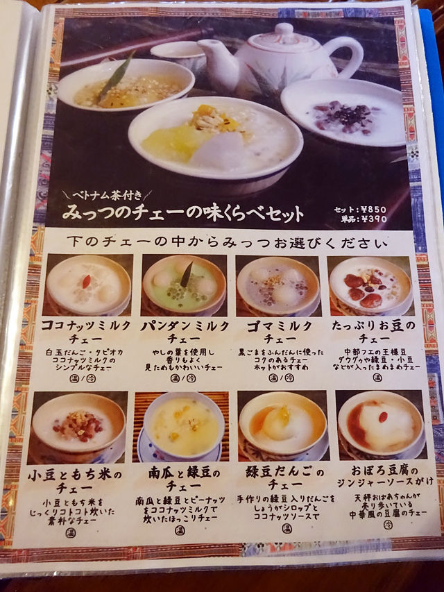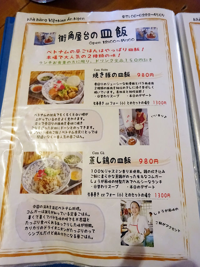 10種類の汁麺セット、6種類のおかず&ご飯のセット、皿飯、カレーなどお手頃なものに加え、ちょっと贅沢にベトナムを満喫できるコースなどどれも魅力的なものばかり。