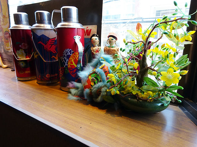 そして入った店内もまたとってもステキー!手前は少人数用の小さめテーブル、簾で隔てた奥はグループもOKなテーブル席。ベトナム雑貨や家具などで統一された、現地さながらの気分を味わえる仕様です!