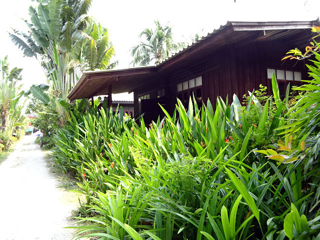 緑あふれる庭が続き、そこに立つ建物はチーク材を使った伝統的なタイスタイルで、一般的なスーペリアルームから、バンガロータイプまであります。