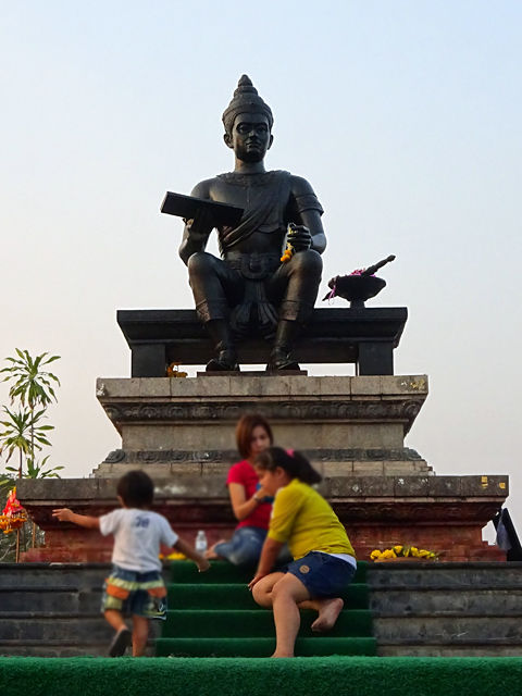ラームカムヘーンはスコータイ王朝の三代目大王で、彼の時期が黄金期。タイ文字の制定、仏教の普及、中国との貿易、芸術発展の促進などなど、現タイの原型を築いたとされ、今なおタイの人々に尊敬される人物なのです。