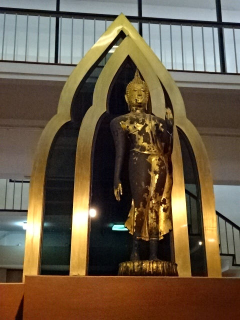 片手をあげ、片足を一歩前に出した、歩く姿はスコータイ独特の様式です。