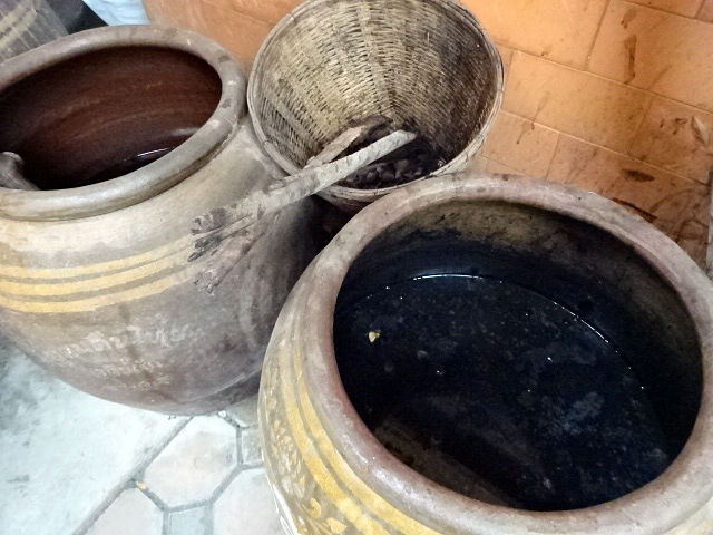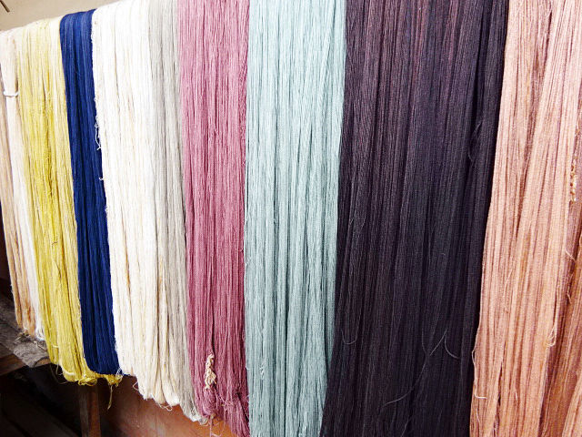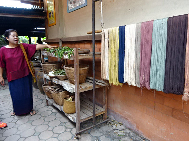 こういった草木染め、綿製品作りというのは、他の地域でもよく見られるのですが、バン・ナ・トン・チャンでは、繊維をやわらかくする性質のある土壌を生かし、この土地の土の泥に漬けて布を柔らかくするという、ここにしかない手法が加わった製品なのです。うーん。昔の人の知恵って、ほんとスゴイ。