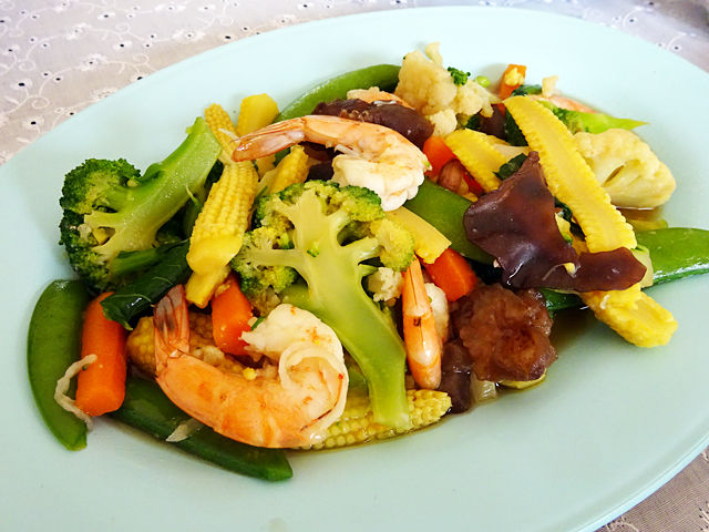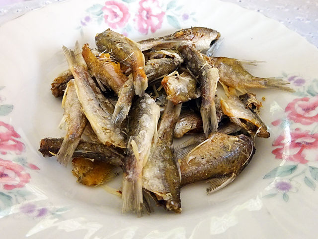 プラー・トート(小魚のフライ)/パッ・パック・ルアムミッ(野菜炒め)