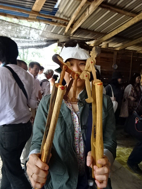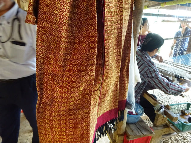 機織りも見学させていただきました。2本の棒を足で操るのが一般的ですが、熟練になると4本の棒をリズミカルに操ってしまうんです!お見事!