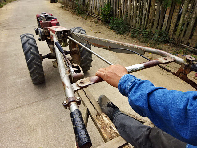 農耕作業に使うであろう乗り物(?)で村を散策!